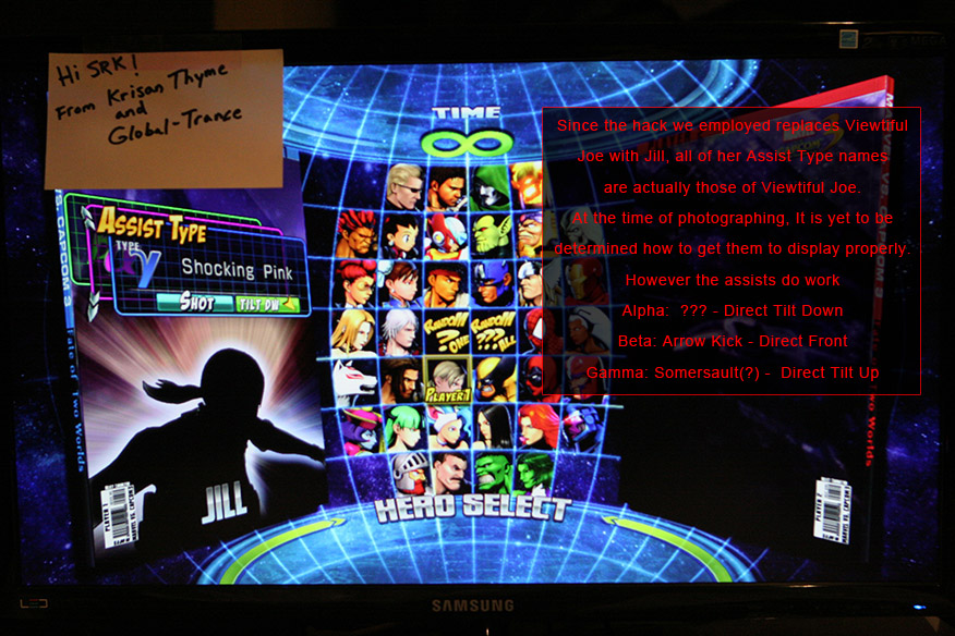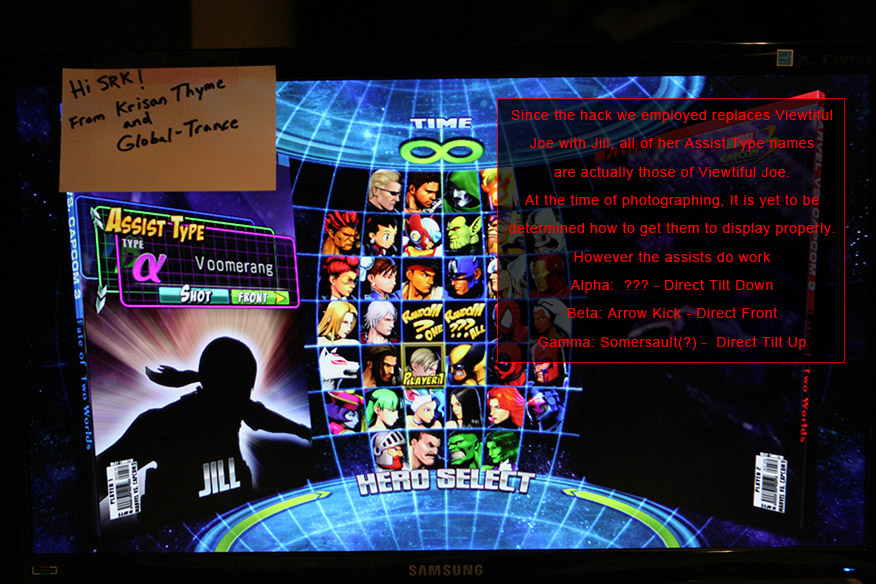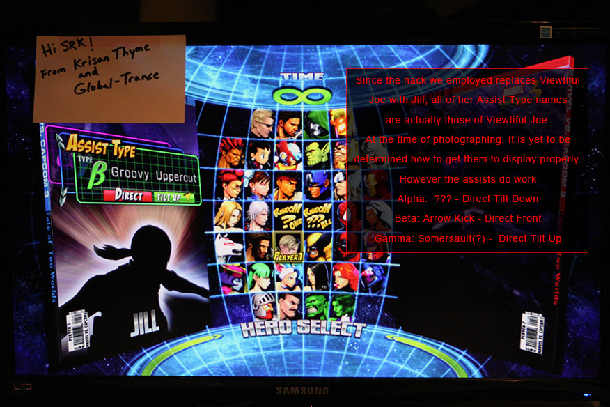 Her art assets are all there, for those curious. And yea, her moveset appears to be complete and in working order as well. Though before anyone cries out in anger at Capcom for placing DLC on the disc after knowing this, you might be very interested to know something else.. For one thing, although she has some voice work done and already on the disc, it appears as though she’s still -missing- a good portion of dialogue. Namely, she’s missing all of her tag-in vocals – she simply says nothing at the moment when she tags someone else in. Likewise it doesn’t seem anyone else has any tag-in dialogue done for her either!